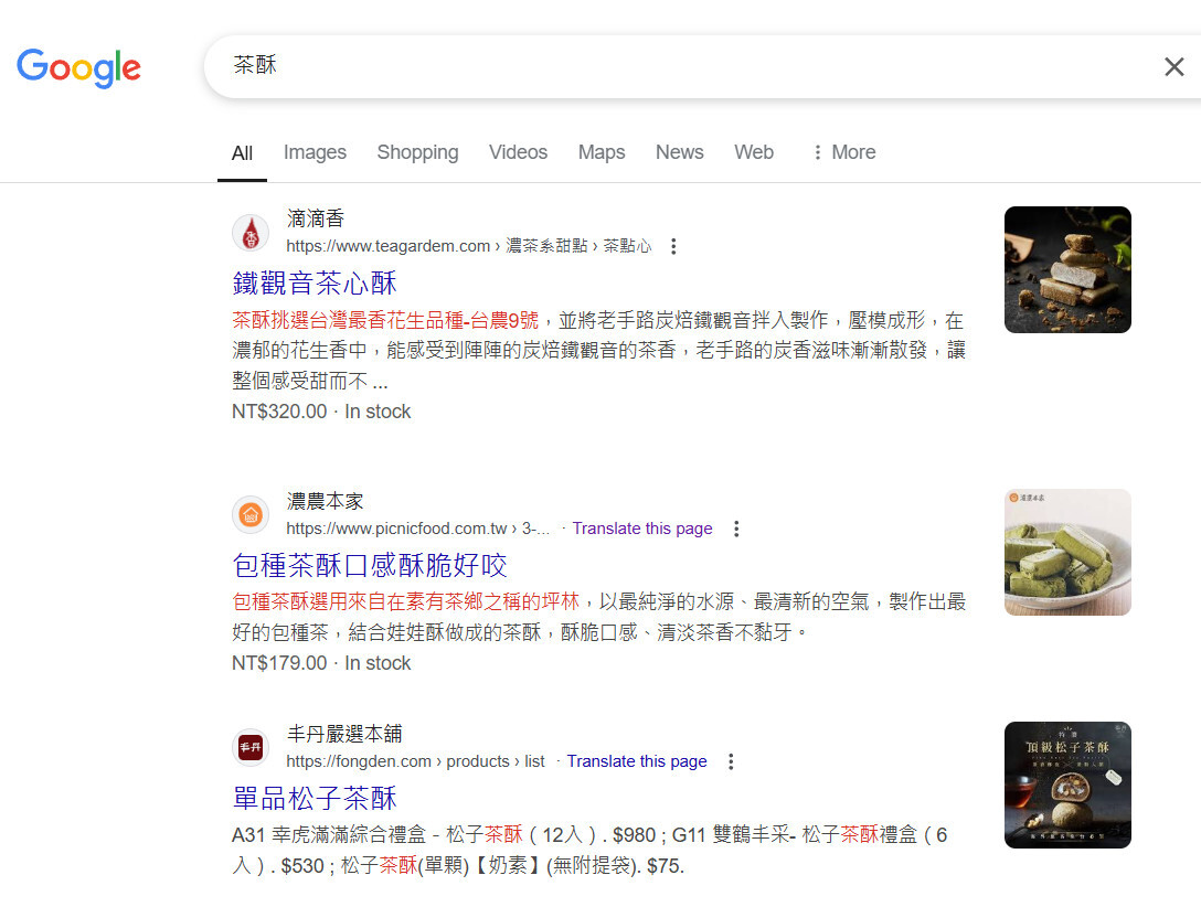 上述第四點,提供給讀者的根據不同類型搜尋字詞建議的搜尋結果顯示策略,整體而言屬於較大的方向。而在實際執行搜尋結果顯示優化時,我們可以用比較微觀的角度,研究某個特定關鍵詞背後的搜尋意圖,並確保搜尋結果顯示明確告知使用者網頁有提供所需的資訊。如果使用者透過搜尋結果上的敘述發現到該網頁所提供的內容正是他們所想要的,自然就更有可能點擊上站。(圖四)