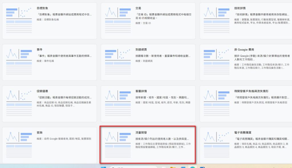 (二)接著在報表範本選擇「流量開發」,如圖二所示。