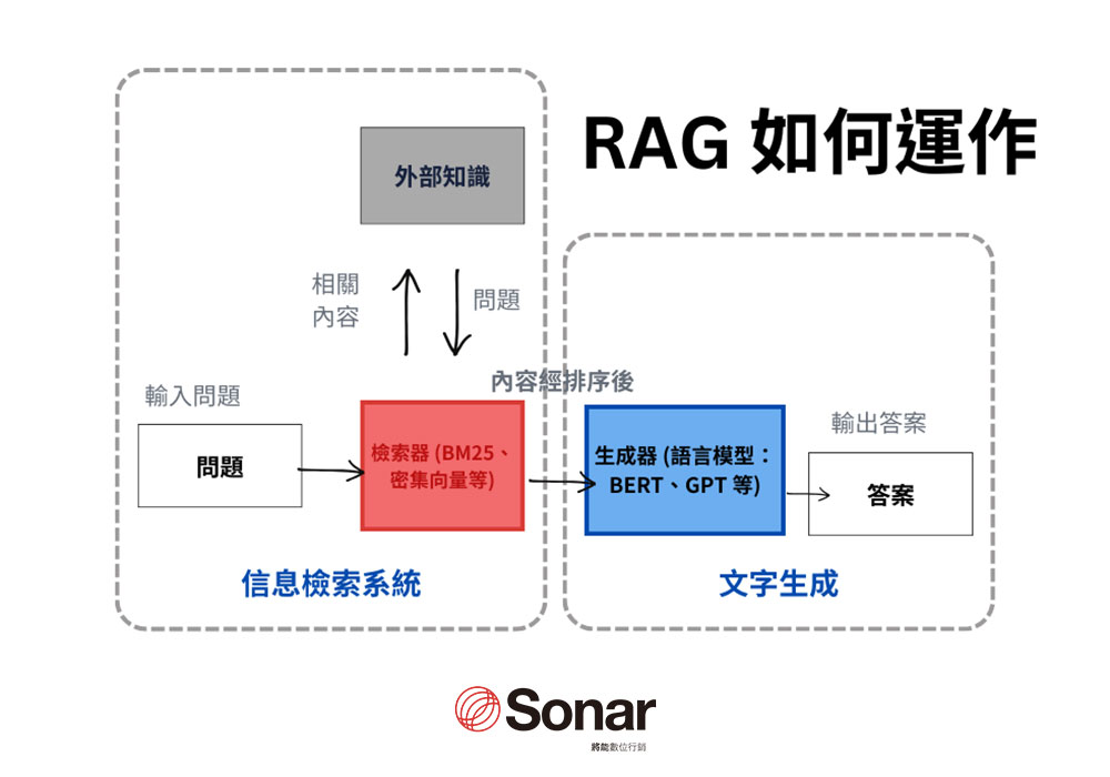 檢索增強生成 (RAG) 是一種結合檢索與生成的 AI 技術,能讓 LLM 使用外部數據源來擴展其生成能力。其主要工作原理是透過外部知識庫 (如文件、數據庫或網路) 提取相關資訊,將之與原始查詢進行合併,從而生成更符合情境的答案。